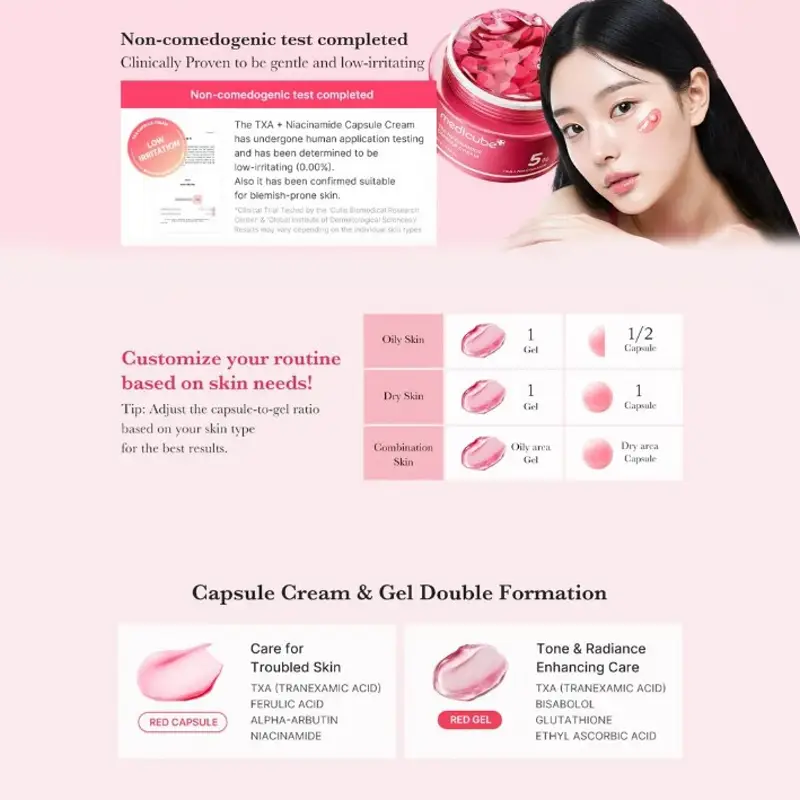 - A cream enriched with TXA and Niacinamide refines uneven skin tone and texture for visibly clearer, radiant skin.